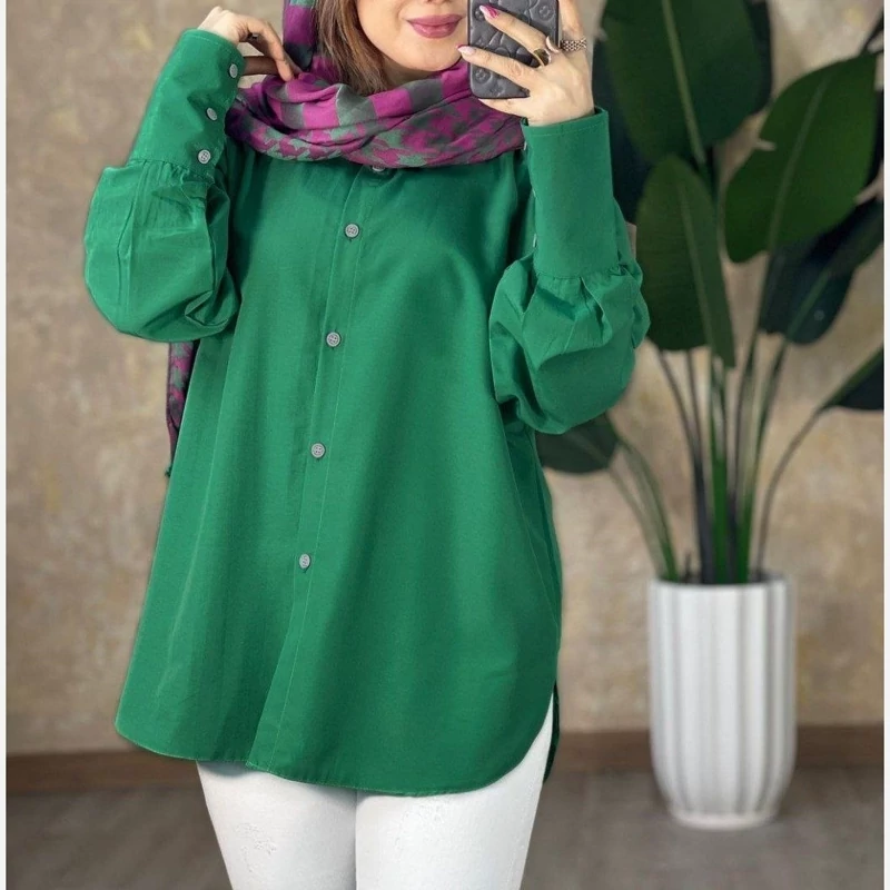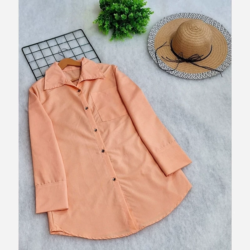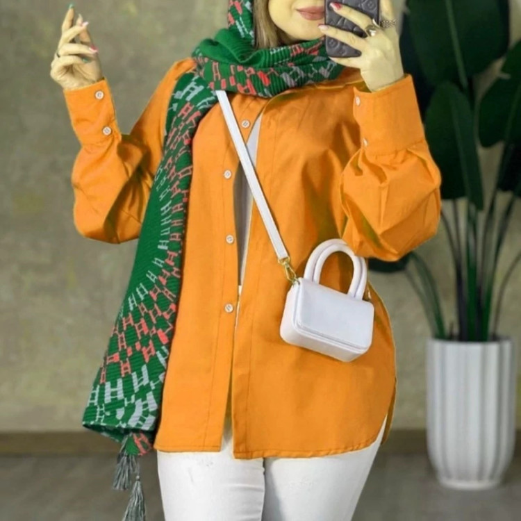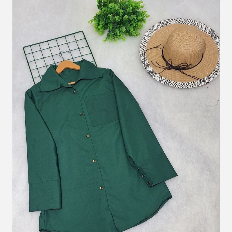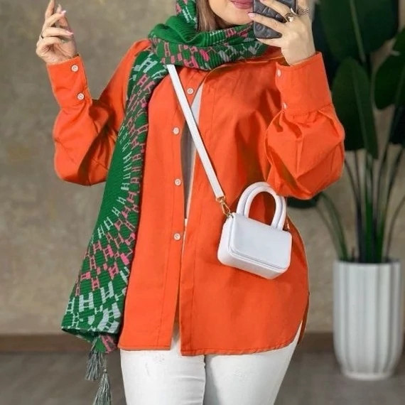 #️⃣شناسه کاربری : #1217 🖋نام : شومیز مانتویی نورا 👚جنس : داکرون درجه یک کیفت عااالی 🌈رنگ بندی : سبز , نارنجی , سرخابی , گلبهی , 📏سایزها : فری38_44 , 📝توضیحات : 🌹قد کار 82 🌹دور سینه 104