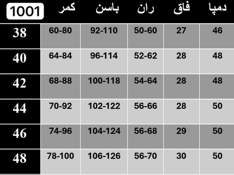 برای انتخاب دقیق عکس هارو ورق بزنید و طبق جدول سایزبندی انتخاب کنید